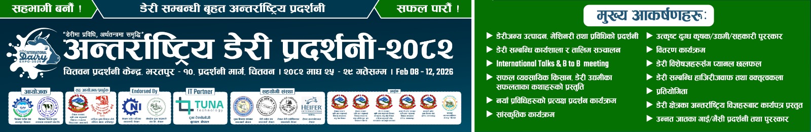चितवन — अन्तर्राष्ट्रिय डेरी एक्स्पो २०८२ को दोस्रो दिन मानव स्वास्थ्यमा दुग्धजन्य पदार्थको आवश्यकता र महत्व विषयक वक्तृत्वकला प्रतियोगिता सम्पन्न भएको छ। प्रतियोगिता चितवन उद्योग संघका अध्यक्ष मदन घिमिरे र चित...