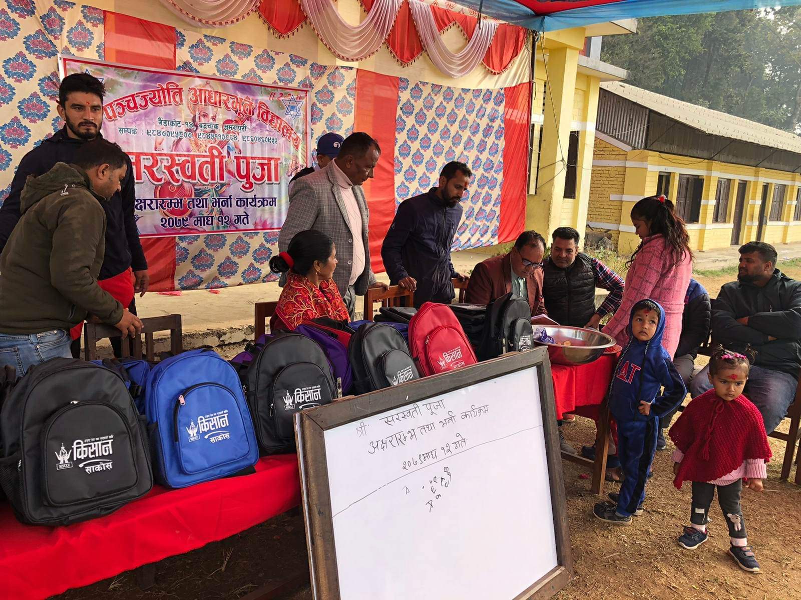 विजयज्योती र पञ्चज्योतीका ७० जना विद्यार्थीहरुलाई झोला , किताव र अन्य शैक्षिक सामाग्रीहरु उपलव्ध गराइएको थियो भने सरस्वती आधारभुत विद्यालयका १० जना विद्यार्थीहरुलाई झोला, कापी, ज्यामितीबक्स सिसाकलम लगायतका शैक्षिक सामाग्री प्रदान गरिएको थियो ।