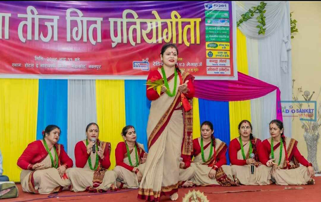 कला संस्कृति लाई संरक्षण गर्दै वषौं देखि गर्दै आएको प्रतियोगिता लाई निरन्तरता दिदै यस वर्ष पनि तिज गित प्रतियोगिता २०८० कार्यक्रम गर्न लागिएको रेडियो संकेतका स्टेशन म्यानेजर सुजन अधिकारीले जानकारी दिएका छन ।