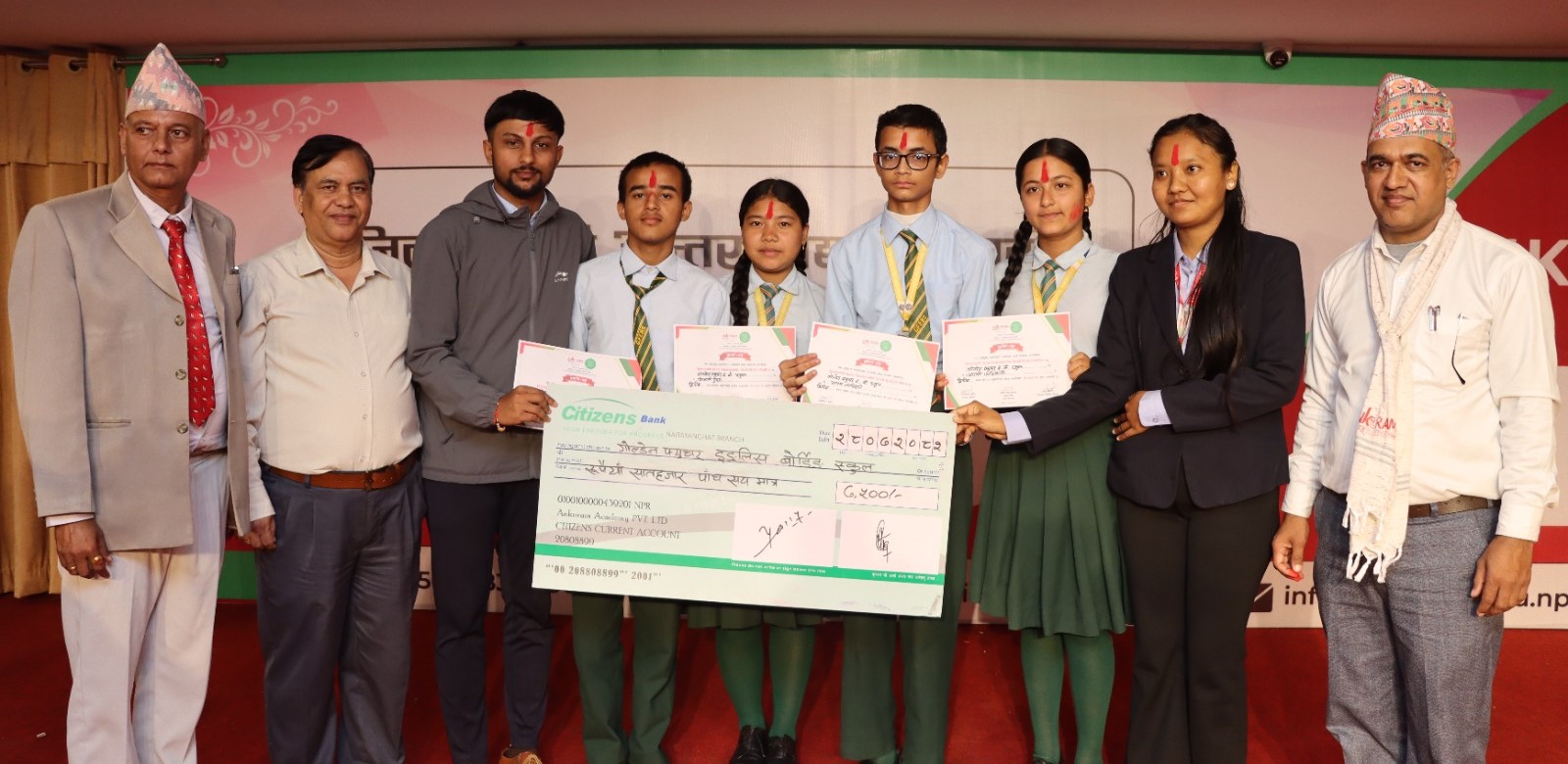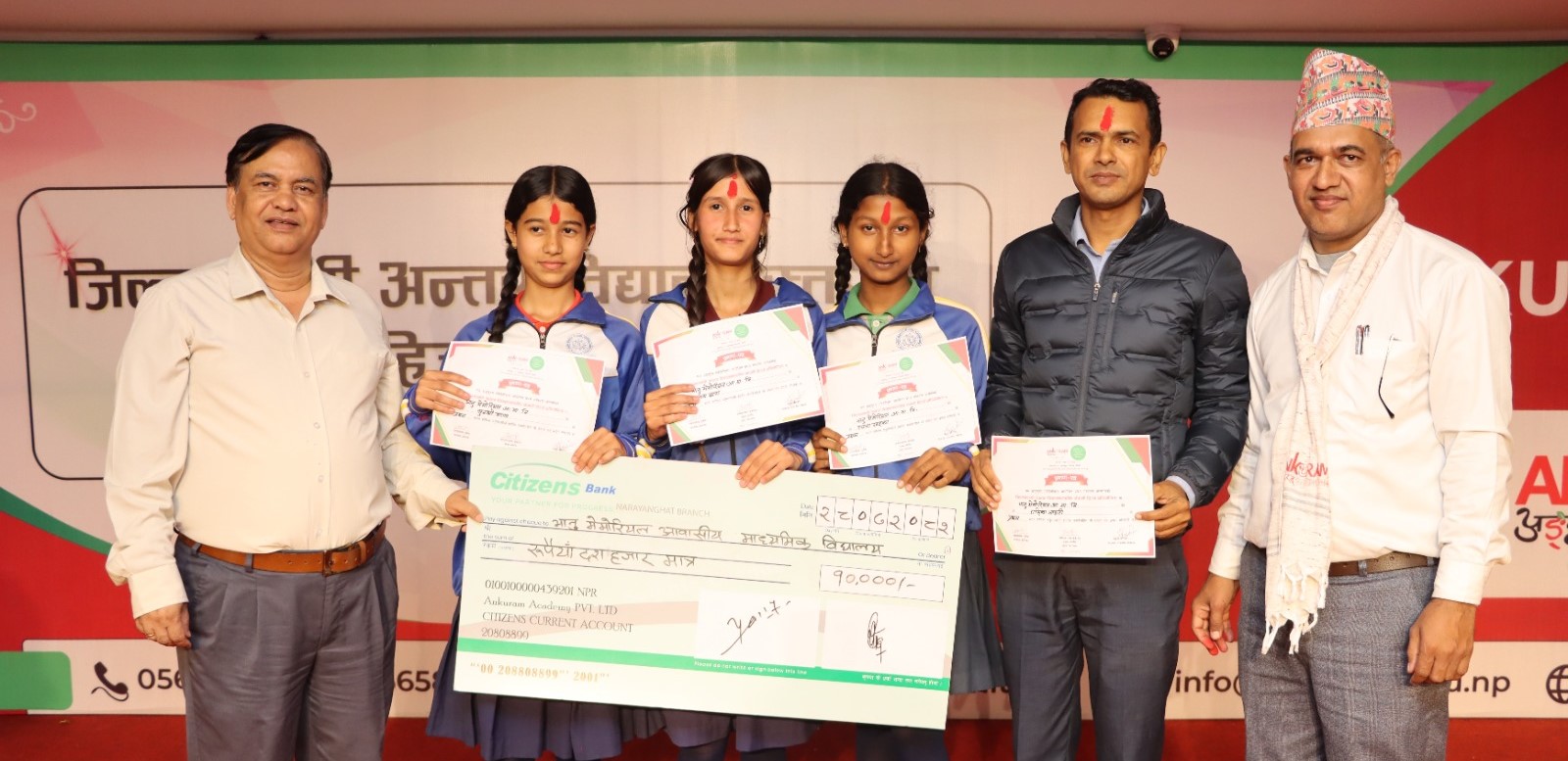 सान्त्वना स्थान वाल्मीकि शिक्षा सदनले हात पार्यो। विद्यालयका ममता सापकोटा, अनामिका खत्री र सम्मान त्रिपाठीले प्रतिस्पर्धा गरेका थिए। उनीहरूले ३ हजार रुपैयाँ प्राप्त गरे। प्रतियोगितामा सहभागी विद्यार्थीहरू कक्षा ७ देखि १० सम्मका थिए।