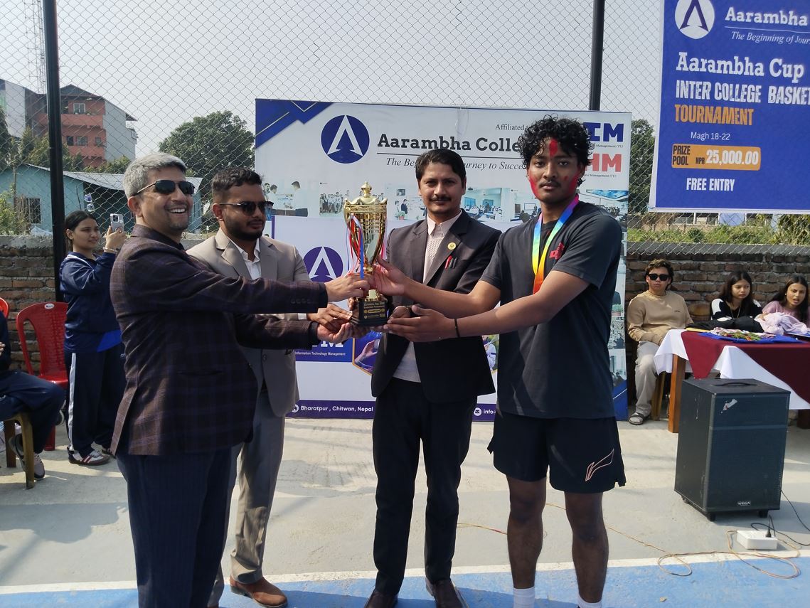 चितवन- चितवनको भरतपुरमा सम्पन्न ‘आरम्भ कप बास्केटबल प्रतियोगिता’को उपाधि भरतपुरस्थित अंकुरम एकेडेमीले हात पारेको छ।शुक्रबार भएको फाइनल खेलमा अंकुरमले खैरहनीको सैनिक आवासीय माध्यमिक विद्यालयलाई ८२–७४ अंकले पराजित गर्दै उपाधि जित्न सफल भयो। उपाधिसँगै अंकुरमले नगद १५ हजार रुपैयाँ, ट्रफी, मेडल तथा प्रमाणपत्र प्राप्त गर्यो।