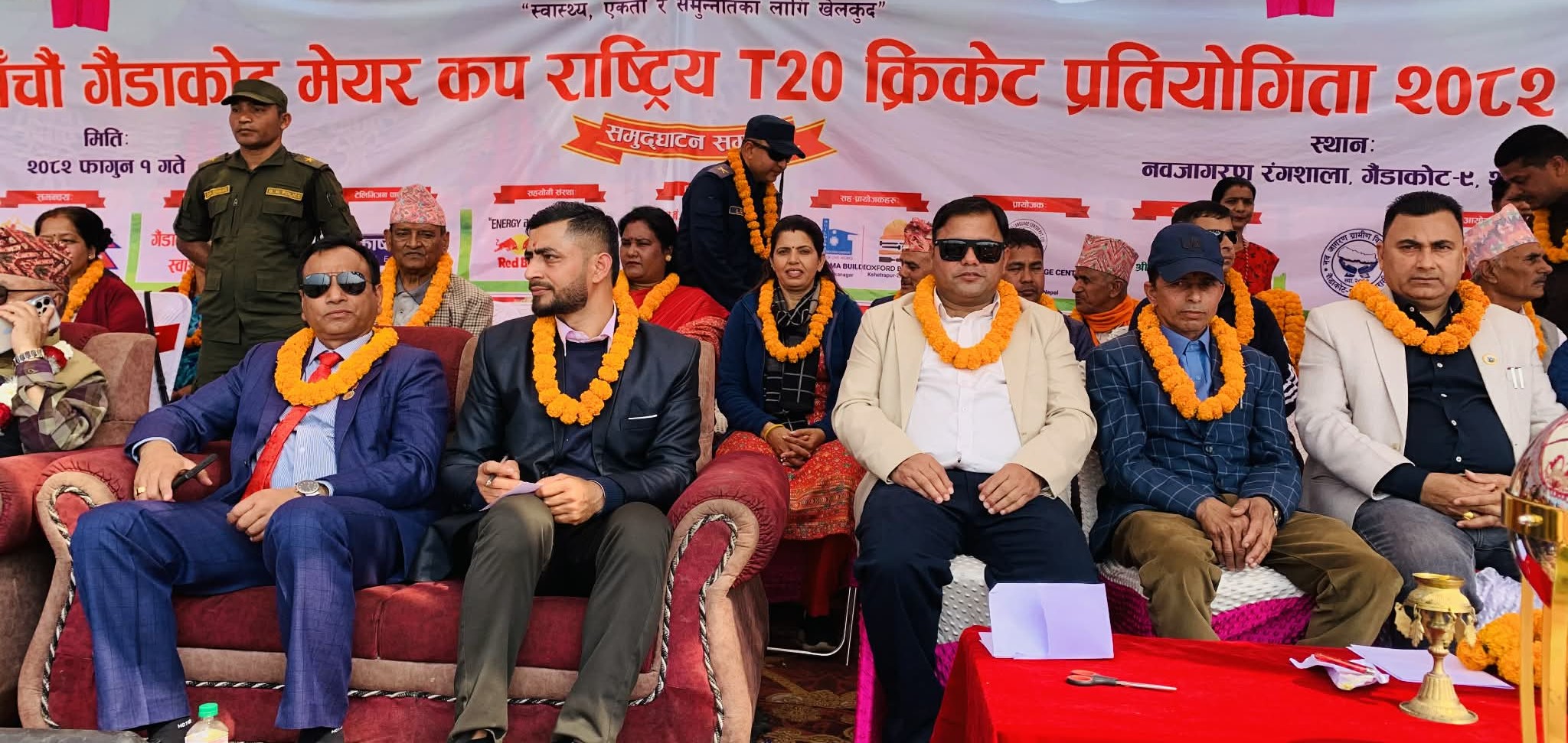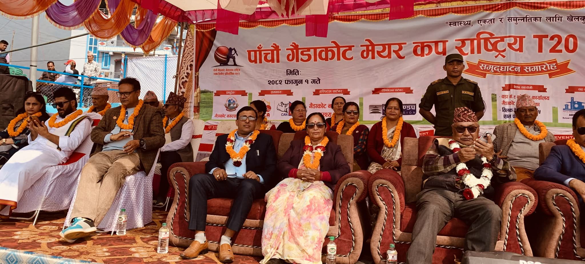 गैँडाकोट- पाँचौँ गैँडाकोट मेयरकप राष्ट्रिय टी–ट्वान्टी क्रिकेट प्रतियोगिताको उद्घाटन खेलमा आयोजक टिम “मेयर इलेभेन” ले विजयी सुरुवात गरेको छ। नवजागरण खेल मैदान मा सम्पन्न खेलमा मेयर इलेभेनले कर्णाली प्रदेशलाई ६ विकेटले पराजित गर्दै प्रतियोगितामा शानदार सुरुवात गरेको हो।